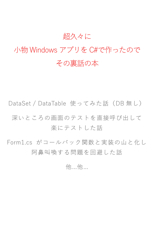 - 【新刊? 追記】超久々に小物WindowsアプリをC#で作ったのでその裏話の本